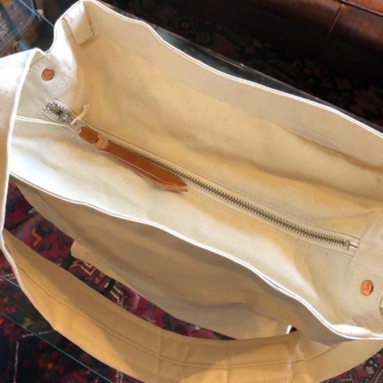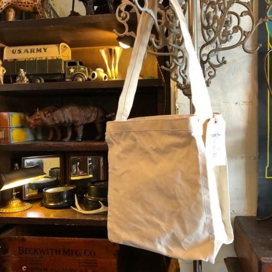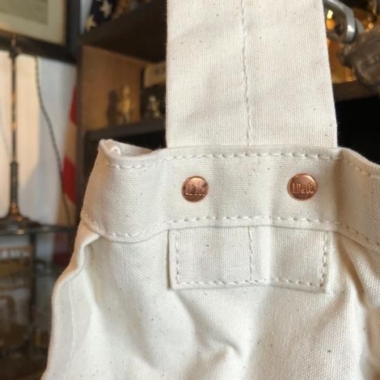 Newspaper Bag をスケールダウンしたBOYサイズのNewspaperBoy Bag。こちらはWhiteのお色になります。マテリアルにパラフィン加工を施した12ozキャンバスを使用しています。