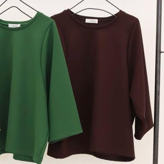 8分袖の綺麗めでゆったりとしたプルオーバーで、アームホールが大きめなドルマン風のシルエット。
