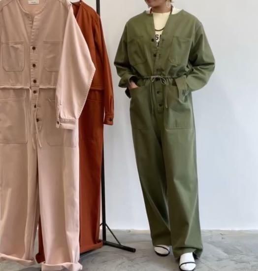 ワーク感溢れるコットン100%のヘリンボーン生地で仕立てたオールインワン。