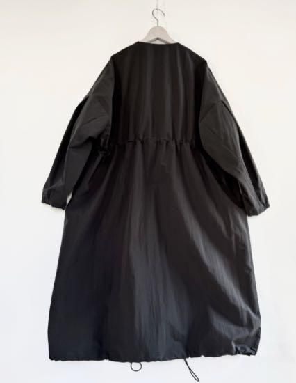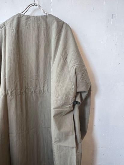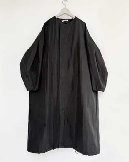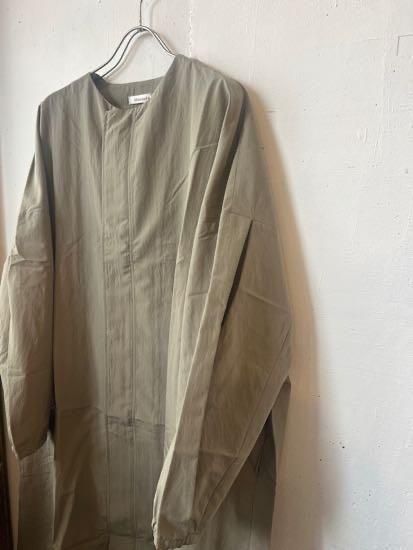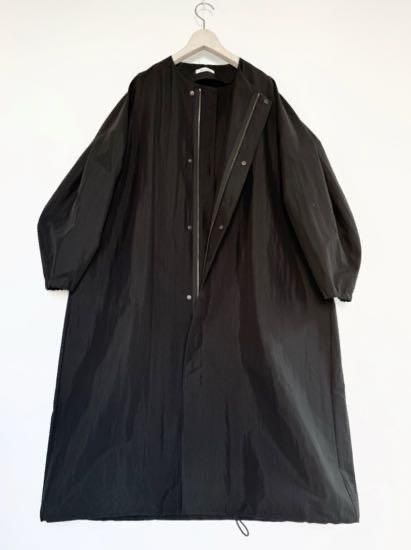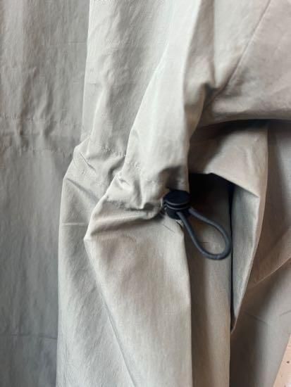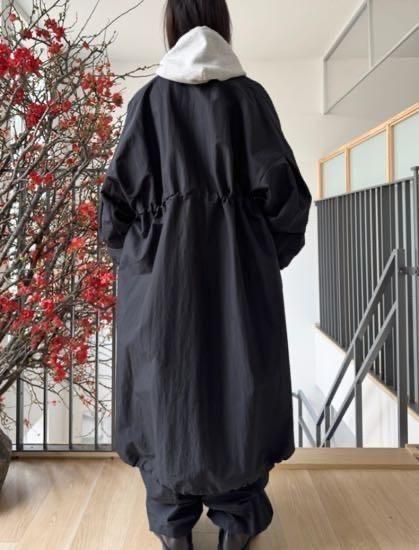 程よい光沢感に滑らかな柔らかさあるコットンナイロン素材を使ったオーバーフィットコート。