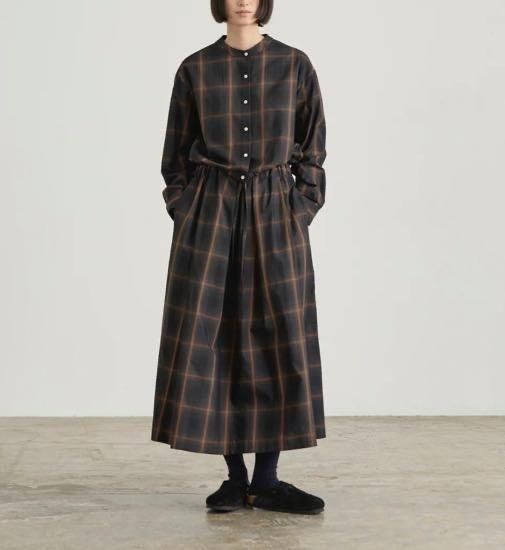 程よく詰まったバンドカラーで、お顔まわりをすっきりと見せてくれます。小ぶりのボタンがディティールのアクセントになっています。