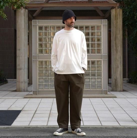 腰回りはゆったりとしつつも裾口に向かってテーパードをかけることで収まりの良いデザインとなっています。