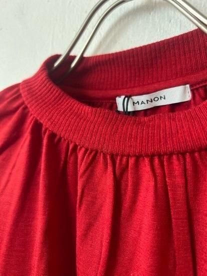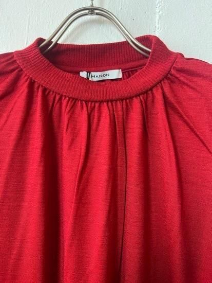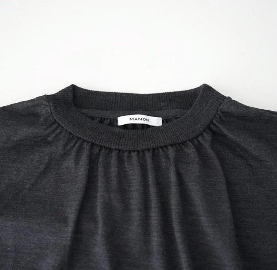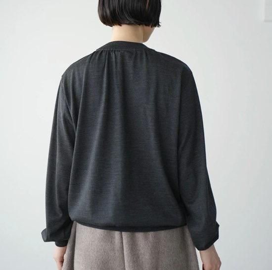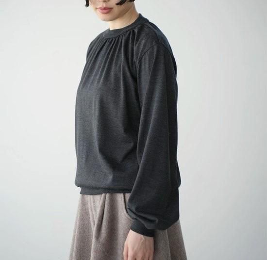 衿ぐりにギャザーを入れ柔らかくふんわりとしたシルエットに仕上げました。