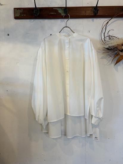 肩やお袖、背面にもたっぷりとギャザーの入った、アンテアシームのオーバーサイズシャツ。